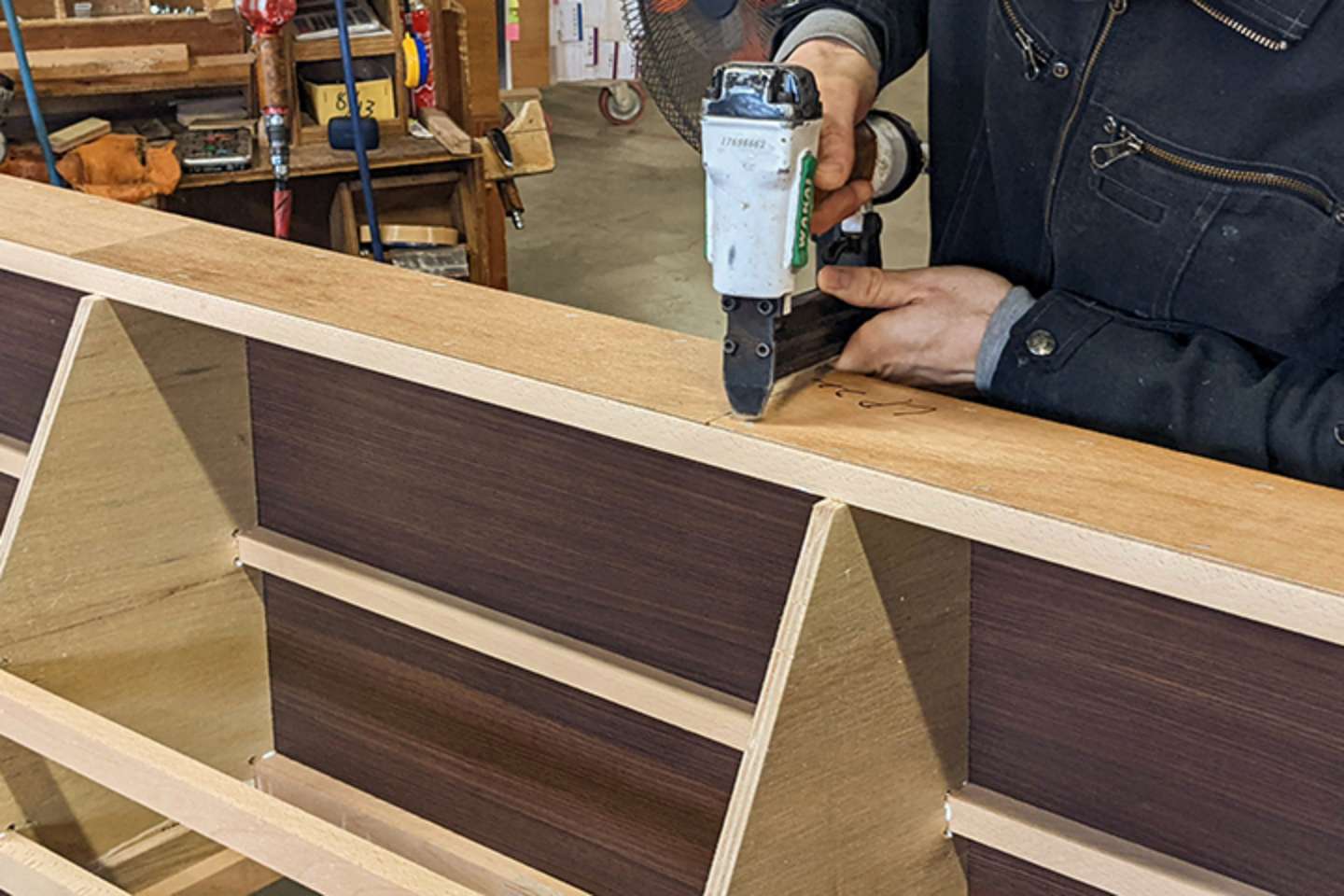 ソファの根幹となる木枠の製造から、見た目を大きく左右する最後の仕上げ生地張りまで、一貫して自社工場で行います。お客様のご要望にあわせて1台ずつ製造を行うため、設計担当と連携を取りながら作業を行います。