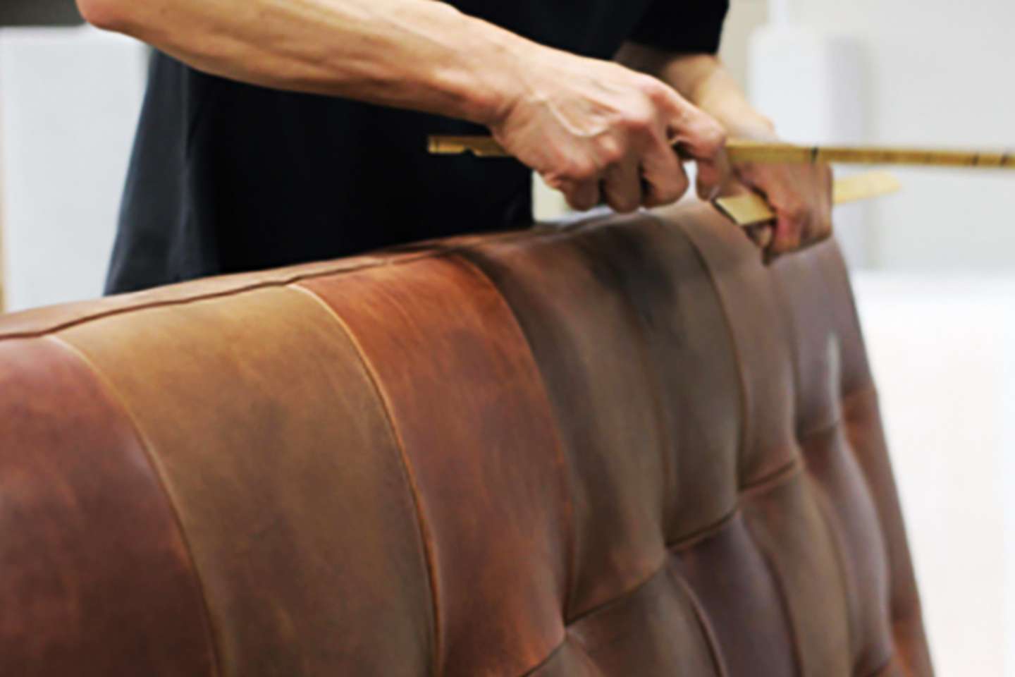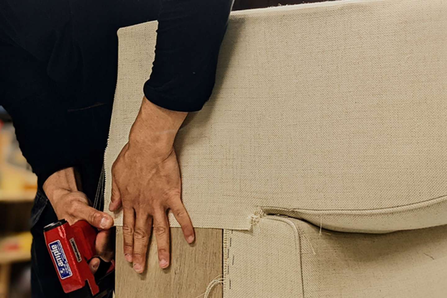 お客様が長年大事にされてきたソファの張替え・修理作業も行っています。