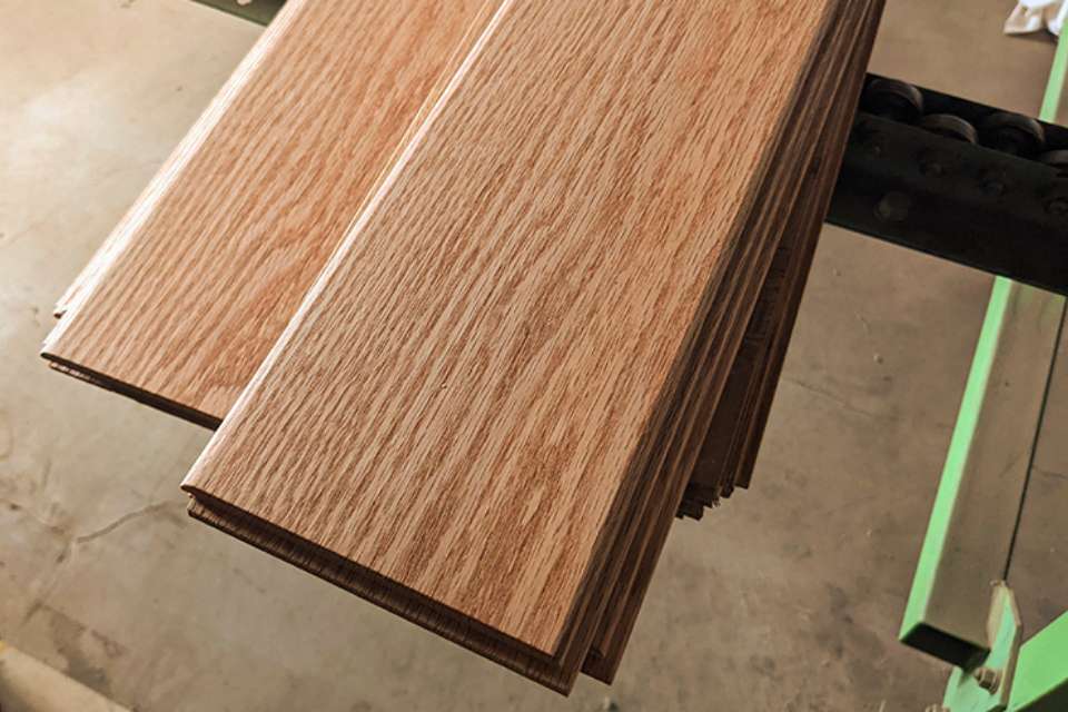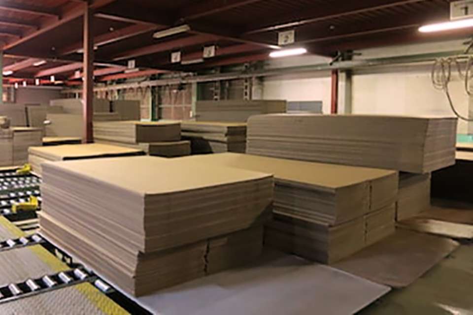 広島の工場から全国に配送されるソファを、しっかりと守るためのダンボールの製造を行って頂いています。強度がとても大事なダンボールは、A段(5㎜)とB段(3㎜)を合わせた、厚さ8㎜の複両面段ボールです。ダンボールにも様々な作り方がありますが、複両面段ボールは強度が最重要される時の造りです。そして、一定の温度でのりを固める技術によって安定した強度を出しています。常に品質の向上を目指し、安定した製品を作り続けることに取り組んで頂いています。