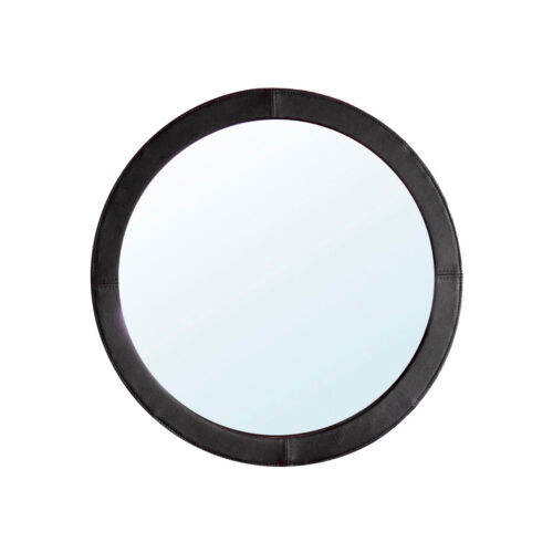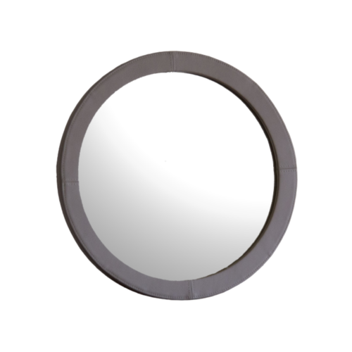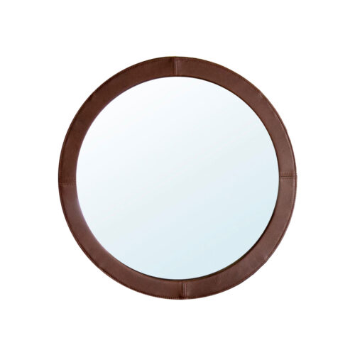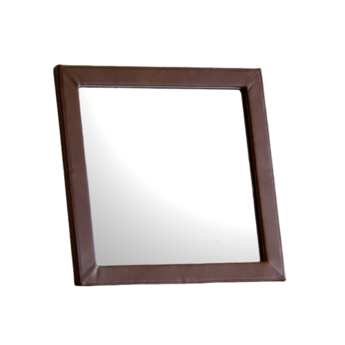 革張りフレームのミラーです。革フレームが重厚感と柔らかい印象を作り出し、シンプルながらもお部屋に置くと存在感があります。年月とともに経年変化していくフレームが、あなたの毎日の暮らしに彩りを添えてくれます。