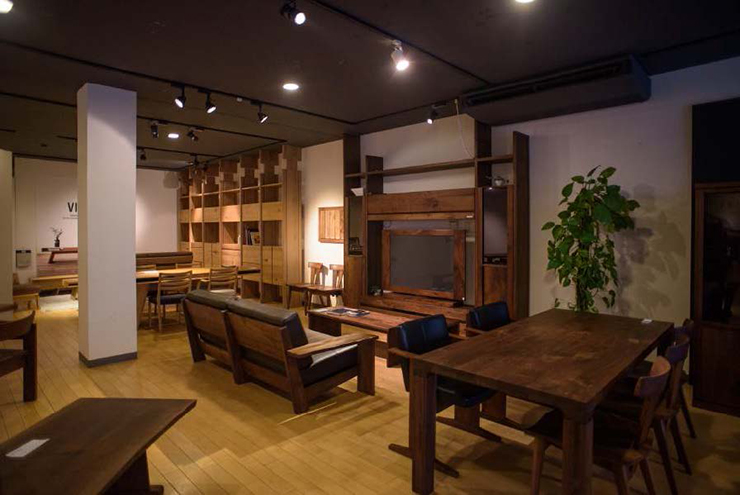 • 木の家具が並べられたショールーム