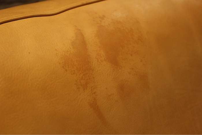 革素材としては最も革らしさを堪能できるこの素上げの革ですが、染みや汚れがつきやすく気を遣う革です。上手く飴色に育てるには努力が必要です。