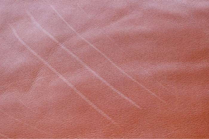 塗装膜がないため、爪などによる引っかき傷がつきます。引っかくと革の繊維が毛羽立って白く目立ちますが、使ううちに目立ちにくくなります。