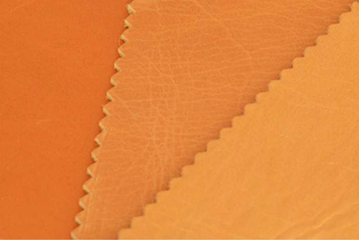 革らしさを残しながら、汚れや色褪せなどを防ぐために、薄い塗装膜を作った革です。この革の良さは、塗装膜が薄いため色に透明感があって、見た目の革らしさが残っているのに、メンテナンスが簡単で使いやすい点です。汚れや色褪せに気を使うことなく気楽に使える革ですが、肌触りや経年変化では革らしさが失われてしまいます。