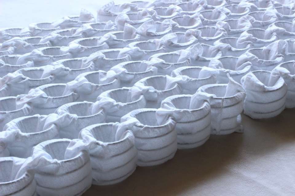 国産のバネを1個1個不織布で包み、つなぎ合わせることで、クッション性と耐久性を併せ持ったバネです。柔らかいのに、立ち上がりやすい座り心地です。