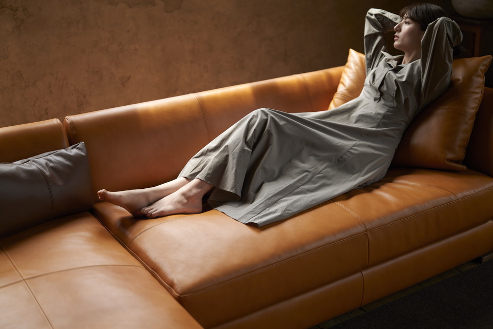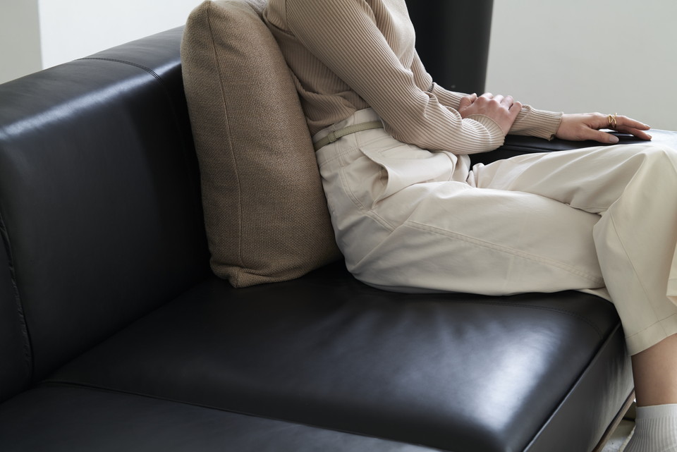 そうした発想から、私たちは「奥行きが深く、背もたれが低い」デザインを考案しました。これにより、さまざまな座り方が可能になり、ご自宅でのくつろぎ時間がより豊かなものになります。