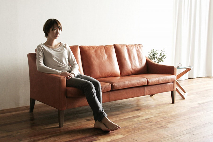 一見、華奢なスタイルのソファですが、座るとじんわりと沈みこみを感じられる、深みのある座り心地です。